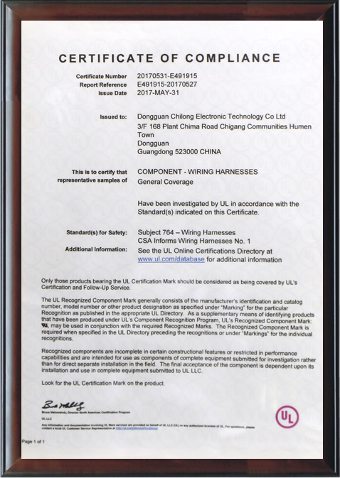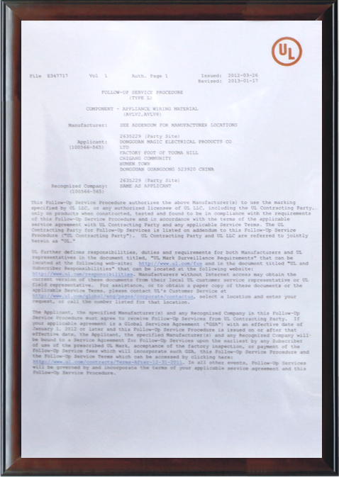 品牌實(shí)力保證公司通過(guò)并擁有電線(xiàn)之UL安規(guī)認(rèn)證,電線(xiàn)加工之UL認(rèn)證,質(zhì)量管理體系之ISO9001認(rèn)證。